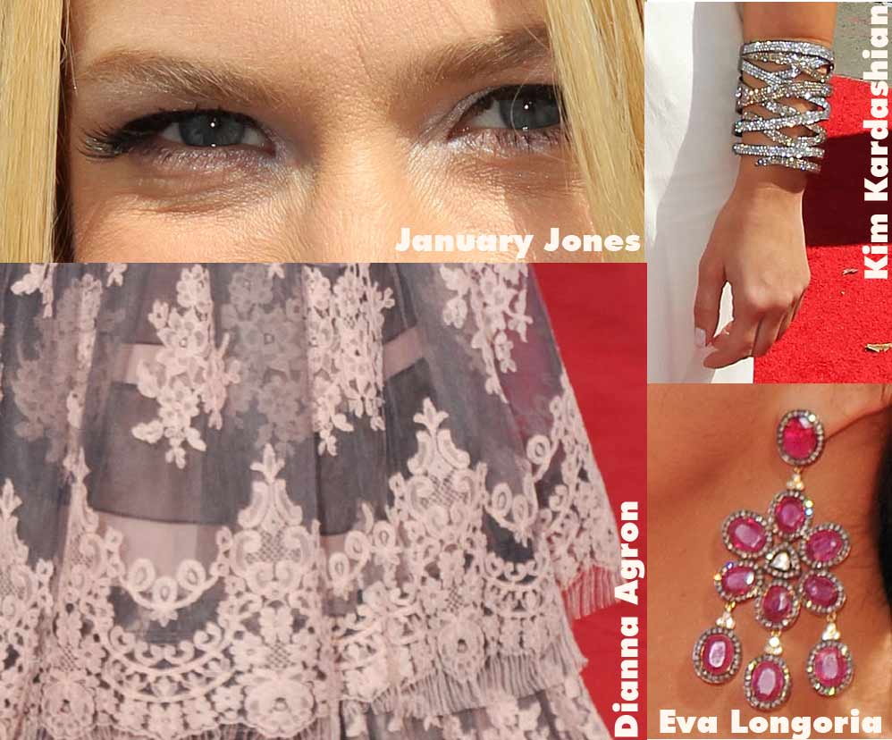 Dianna Agron (vencedora do último #LDS) também arrasou com o vestido todo rendado, repare no constraste da renda com as listras por baixo, ficou uma graça! Kim Kardashian com seu bracelete milionário e Eva Longoria musa do drama no red carpet também capricharam.