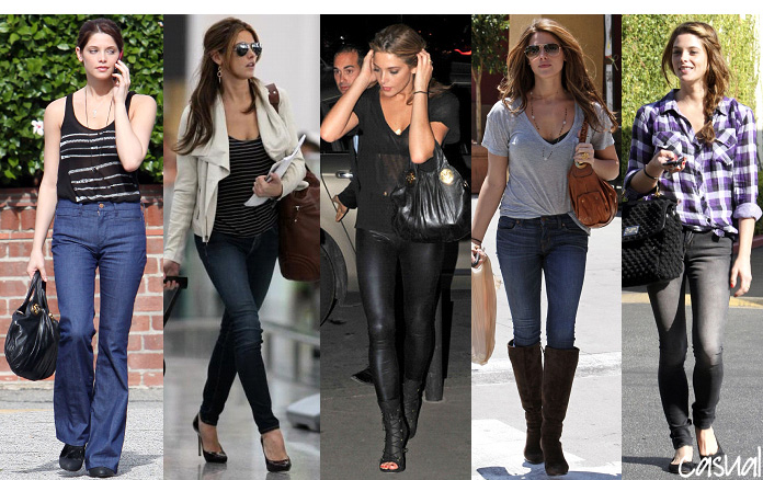 Eventualmente sobe no salto, mas quando o faz, nada de shortinho, sempre acompanha com uma calça pra não piriguetizar o look. Da calça pantalona à calça tipo couro, Ashley é comedida e vida real, sem afetação nenhuma mostra que menos de fato é mais, e a gente tãão curte famosas assim!