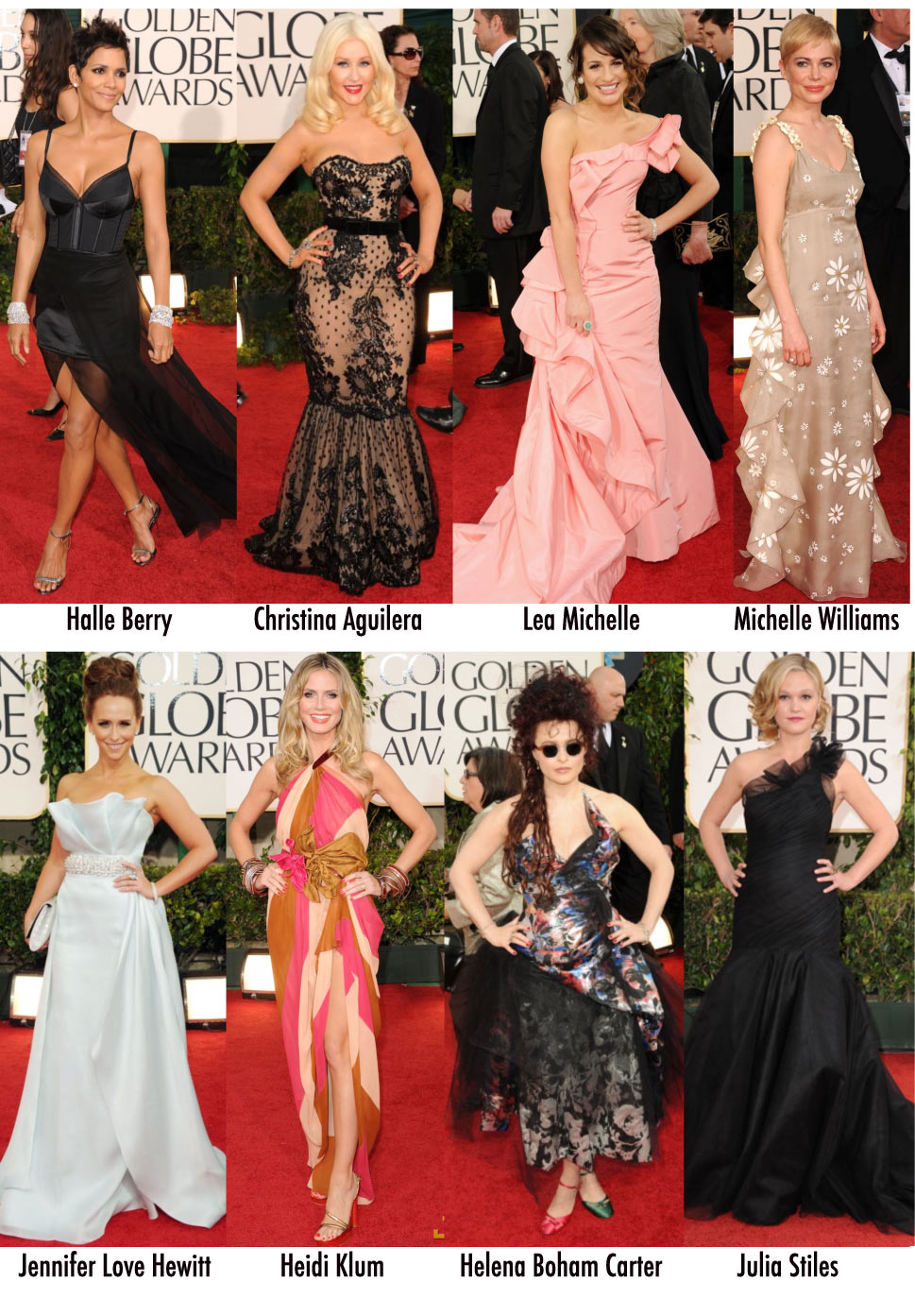 Tem muito look que eu não achei ruim nessa votação viu!Eu acompanhei o início da premiação ontem na TNT e vi que as fotos desfavorecem muito.Achei que Angelina Jolie estava horrorosa,o cabelo mega desgrenhado e um vestido verde xoxo so last decade.A Halle Berry estava radiante,só não gostei da sandália.Se tivesse usado uma fechada ia ficar lindo.Christina Aguilera ridícula e poser e com uma cara de acabei de comer 20 chocolates so what.Lea Michelle deu uma de Scarlett O’Hara com esse vestido feito de cortina (embora tenha acertado na cor).Michelle,esse vestido é uma gracinha mas não combina com red carpet.Jennifer é tão linda e ficou péssima com esse vestido.Votei na Heidi,poruqe OH MY GOD que bosta é essa?Sério,uma mulher rica e linda e gostosona dessas usando um vestido que parece ter sido tirado do lixo!A-DO-REI a Helena,quem votou nela simplesmente não sabe que o estilo dela é esse.Eu amo pessoas assim, e na Tv o look dela estava incrível.Além de ser super simpática.E finalizando,amei a Julia viu.Não vejo nenhum drama,Thereza.Adorei o cabelo dela e a maquiagem básica.