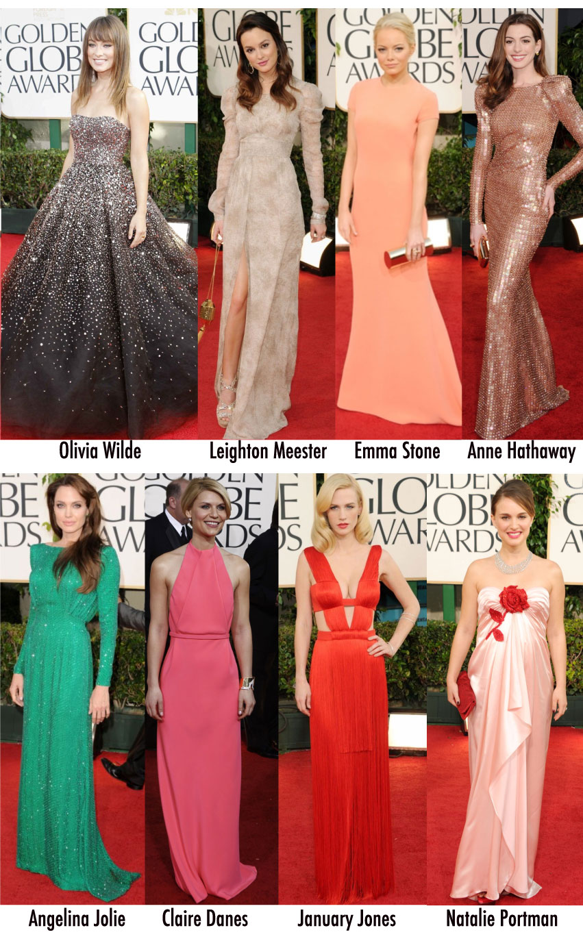 Eu adorei o da Anne Hathaway e o da Angeina Jolie!!! De uma forma geral, comparando com alguns GG anteriores, até que este Red Carpet não teve muitos looks ruins, né? Achei vários modelos bem usáveis e copiáveis!!