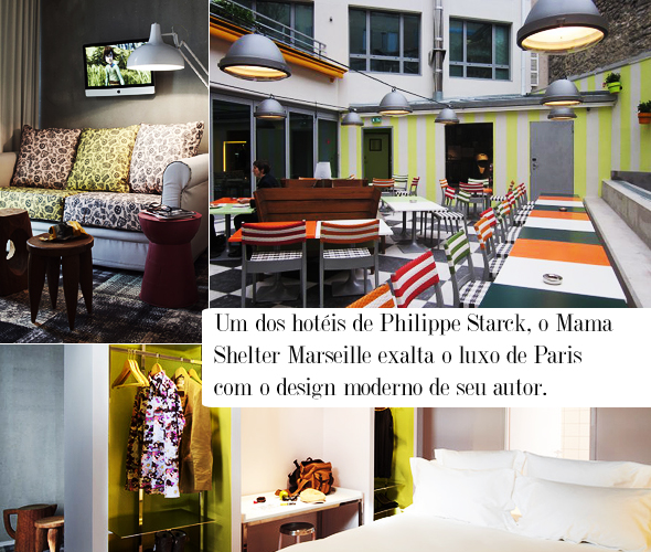 Outro dia começamos nossa tag Philippe Starck e agora é a vez de falar de um dos meus hotéis favoritos do designer, o Mama Shelter. Assim como o Paramount em NY, que recebe a alcunha de “hotel de boutique”, esse também segue a linha mais baratinha, mas ainda descolada. Quem curte ficar em hotel com design mais moderninho e divertido, o Mama Shelter (Seja em Paris e Marseille) é uma ótima opção!