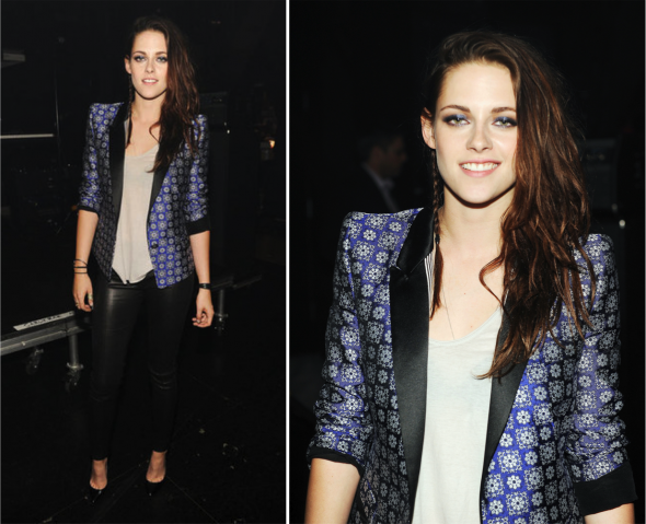 Pra finalizar a leva live do TCA (durante a madrugada tem post com a votação!!): Kristen Stewart. E eu adorei o look! Amei porque achei a cara dela. É interessante, diferente, jeito de “tô nem aí”. Curti o mix da calça de couro + t-shirt podrinha + jaqueta poderosa (Cavalli). Kristen fechou bem com make caprichada e mais trancinha nada a ver!