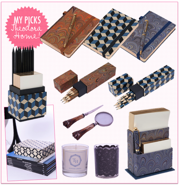 Por lá, eles tem dos kits básicos (com várias estampas) de blocos, lápis e moleskines até mesmo lupa e abridor de carta (chique!). Outra coisa fundamental pra incrementar o ambiente de trabalho e/ou estudo são velas, acho que combina bem com o tema! Além da Theodora Home ter essência própria, eles tem inúmeros porta-velas, meu favorito é esse rendado!