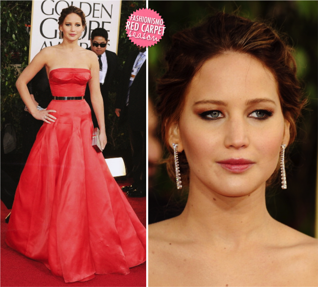 A coisa tá melhorando!! Olha que diferença do tomara que caia da Zooey pra esse look da Jennifer Lawrence! Antes de mais nada, na tv é muito mais bonito, mostra o caimento e cada detalhe desse Dior Couture incrível! Acho que ela caprichou, arrasou nos mínimos detalhes (o penteado é lindo) e o cinto dourado foi o toque final! Tá no topo dos favoritos até agora, e pra vocês?