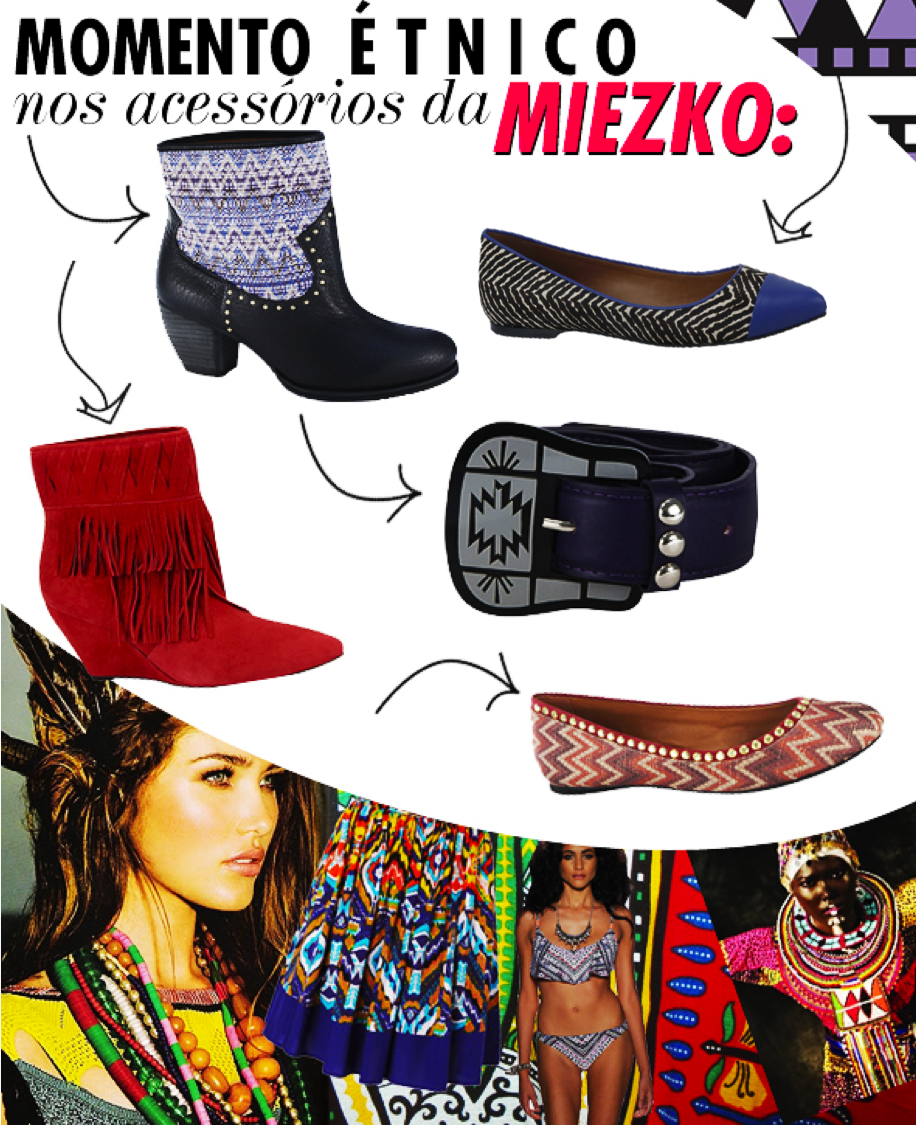 E quem nos acompanhou nessa temporada – e nessa tendência – foi a Miezko, que nos apresentou (e calçou!) seus produtos da coleção de inverno. Eles lançaram o site com a nova coleção ontem, e eu já separei meu moodboard todo trabalhado no momento étnico!