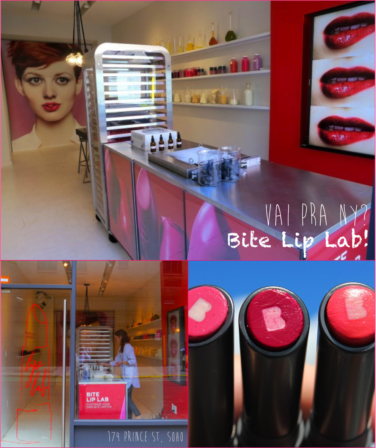 O que uma coisa tem a ver com a outra? É que a Bite, empresa canadense super descolada de cosméticos, inaugurou sua pop up store recentemente no SoHo e por lá uma novidade, que eu nunca vi parecida: faça seu batom! Ali, na hora!
