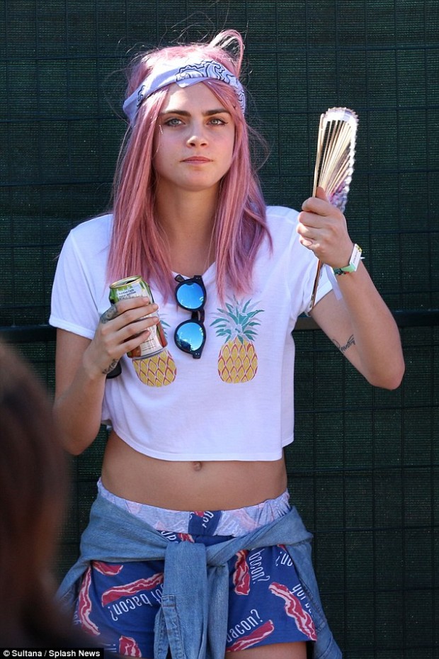 Bacon com abacaxi?? Não, essa é apenas Cara Delevingne ontem com uma peruca pink no show da namorada. E num é que a danada fica bem até assim? E por falar nela, mais polêmica! Talvez nada na última semana foi tão comentado quanto a alta do dólar entrevista da Cara Delevingne para um programa matinal dos EUA (se você não viu, clique aqui).