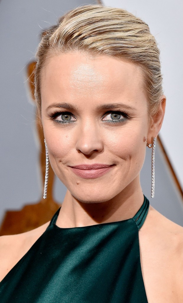 Rachel McAdams com sombra combinando com o vestido, achei simpático.
