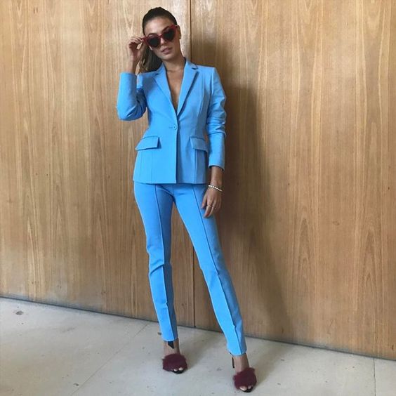 Isis no dia a dia é muito pirigueti de humanas, gente como a gente. E dos looks de eventos o terninho azul tá maravilhoso.